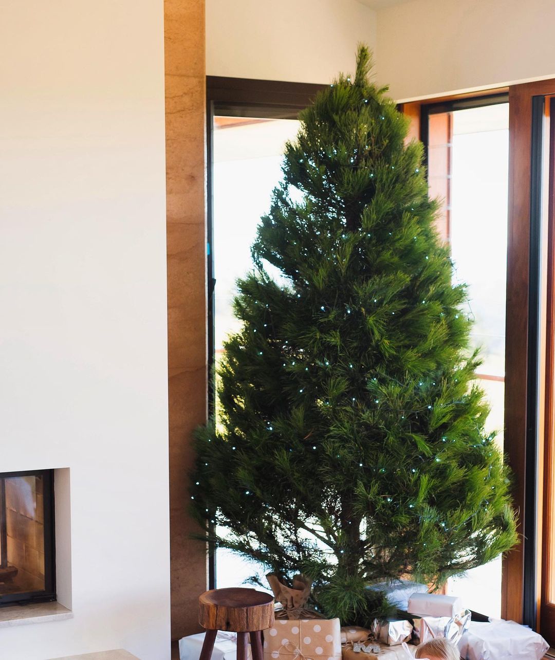 This real Christmas tree is a Monterey Pine (otherwise known as a Pinus Radiata) grown at a Christmas tree farm. For every tree that is harvested another is planted in its place.